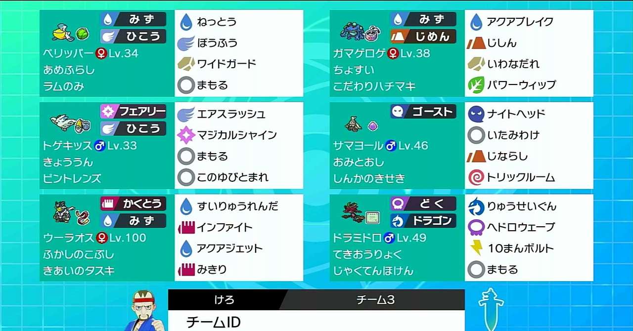 今回のパーティではこの電磁波とドラミドロの組み合わせを軸にして、 ドラミドロの高い攻撃性能をフルに活かすことを目指しました。 それではここから個々のポケモンの紹介に移ります。 各ポケモンの詳細 *ドラミドロ ・性格:控えめ. はじめに 最低限目標としていた3桁順位を達成しましたので構築の紹介をさせていただきます。個性的なポケモンを使っているので気になる方は昔の記事も含めて見ていただけると嬉しいです。 ↓最終順位 技構成、持ち物、パーティ ・ニンフィアムーンフォースなのは元々違う型で育成してて. Smの流星群エフェクトが気になりますね。 パーティ マーイーカ可愛い。 構築が出来るまで ~時はoras発売直後からちょっとぐらい~ 適応力ドラミドロ使いたいな~ 流星群でカメガル倒せるし ↓ ギルガルドが超辛いからメガ枠はバクーダだな ↓ 後はトリル要員でガルドに強いポケモンいない.