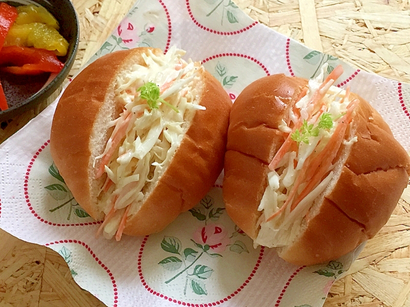 バターロールのコールスローサラダサンド レシピ 作り方 By まかろん 楽天レシピ